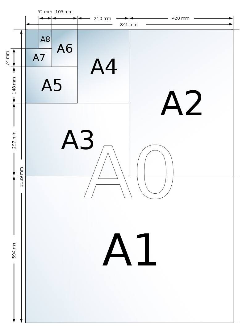En europa el estandard utilizado para las medidas de las fotografías es el formato DIN A, siendo los mas usuales los A4, A3, A3+, el A2 es poco utilizado y normalmente a partir de A3+ se utiliza en rollo que se medirán por su ancho en pulgadas (normalmente de 24 a 60) y por su longitud en metros